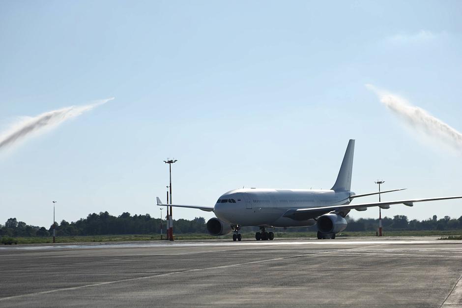 Нанҳәамза 14 рзы В.Г. Арӡынба ихьӡ зху Жәларбжьаратәи аҳаирбаӷәаза «Аҟәа» аҟны авиаеилахәыра «iFly» инанагӡаз Санкт-Петербургынтәи иааз раԥхьатәи ареис иаԥылеит. Традициала ишаԥу еиԥш, аперрон аҟны актәи аҳаирплан ааира азгәаҭан аӡы хыргьагьа ҟаҵаны. Иааз ареис иаԥылеит Аԥсны Аҳәынҭқарра Аԥыза-министр Делба Владимир напхгара ззиуаз Аԥсны Аиҳабыра ахаҭарнакцәа, Аԥсны Аҳәынҭқарраҟны иҟоу Урыстәыла ацҳаражәҳәаҩ Михаил Шургалин.